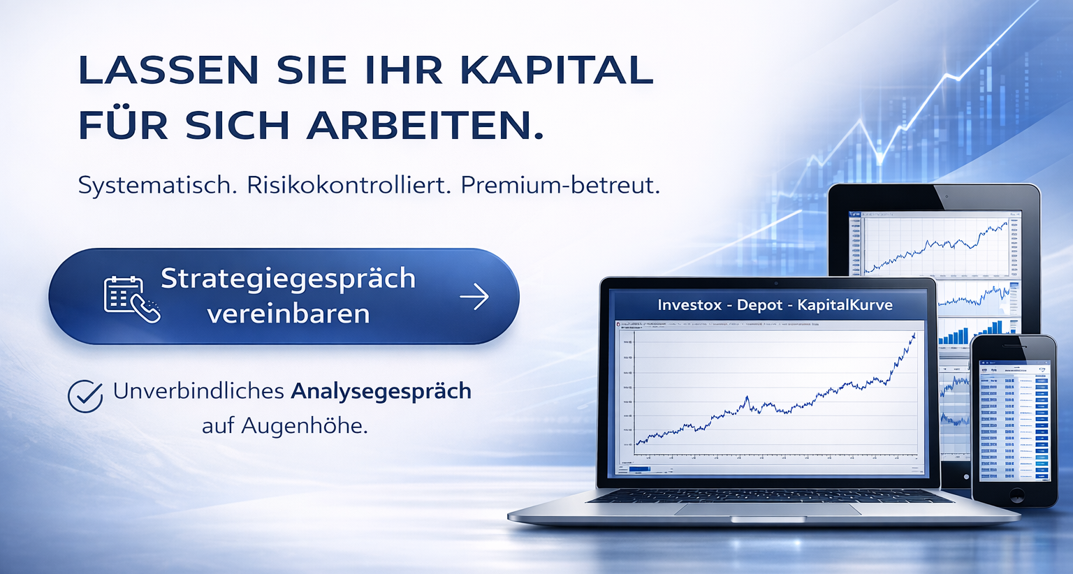 Automatische Handelssysteme ermöglichen es Ihnen, Ihr Kapital profitabel, regelbasiert und risikokontrolliert an den Weltbörsen anzulegen – unabhängig von Ihrer Stimmung, vom Marktrauschen oder von spontanen Einschätzungen.